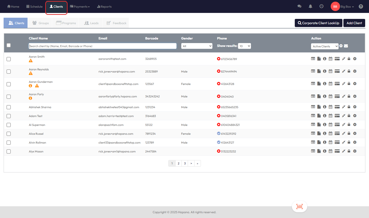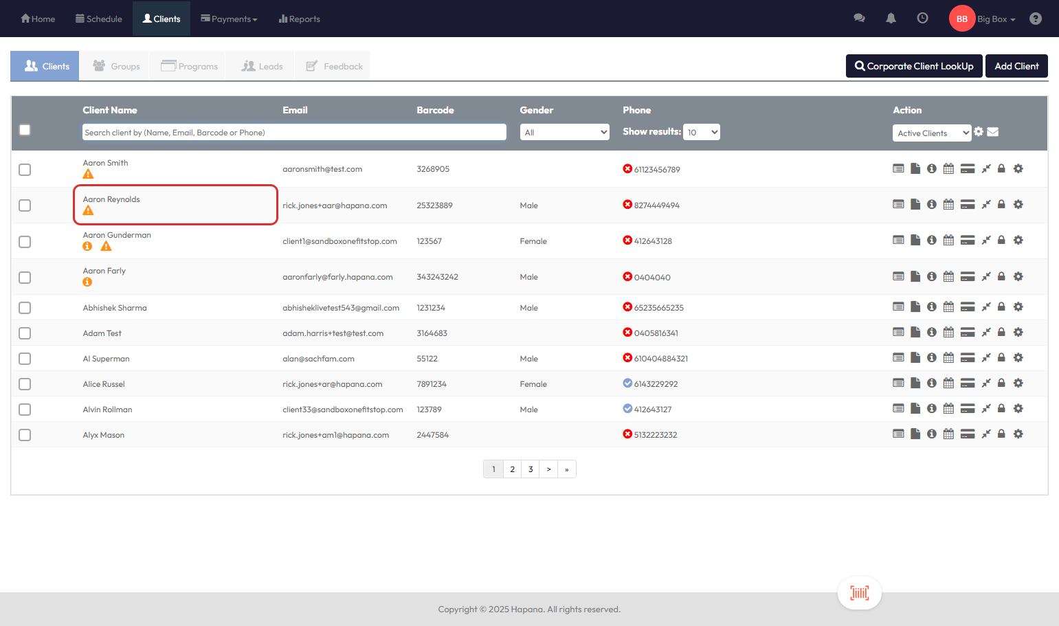 - In the Search client field, type the client's name, email address, barcode, or phone number to find them easily.