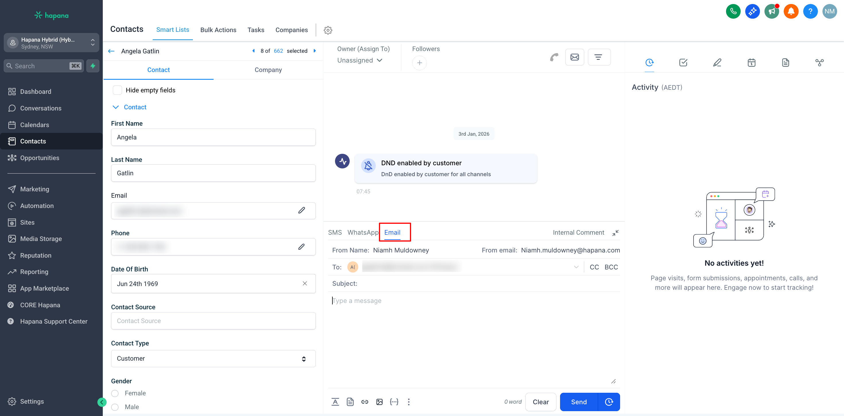 This guide shows you how to add CC (carbon copy) and BCC (blind carbon copy) recipients when composing emails in GROW contact profiles. These fields are helpful when you want to include other contacts in an email thread — either visibly (CC) or privately (BCC).