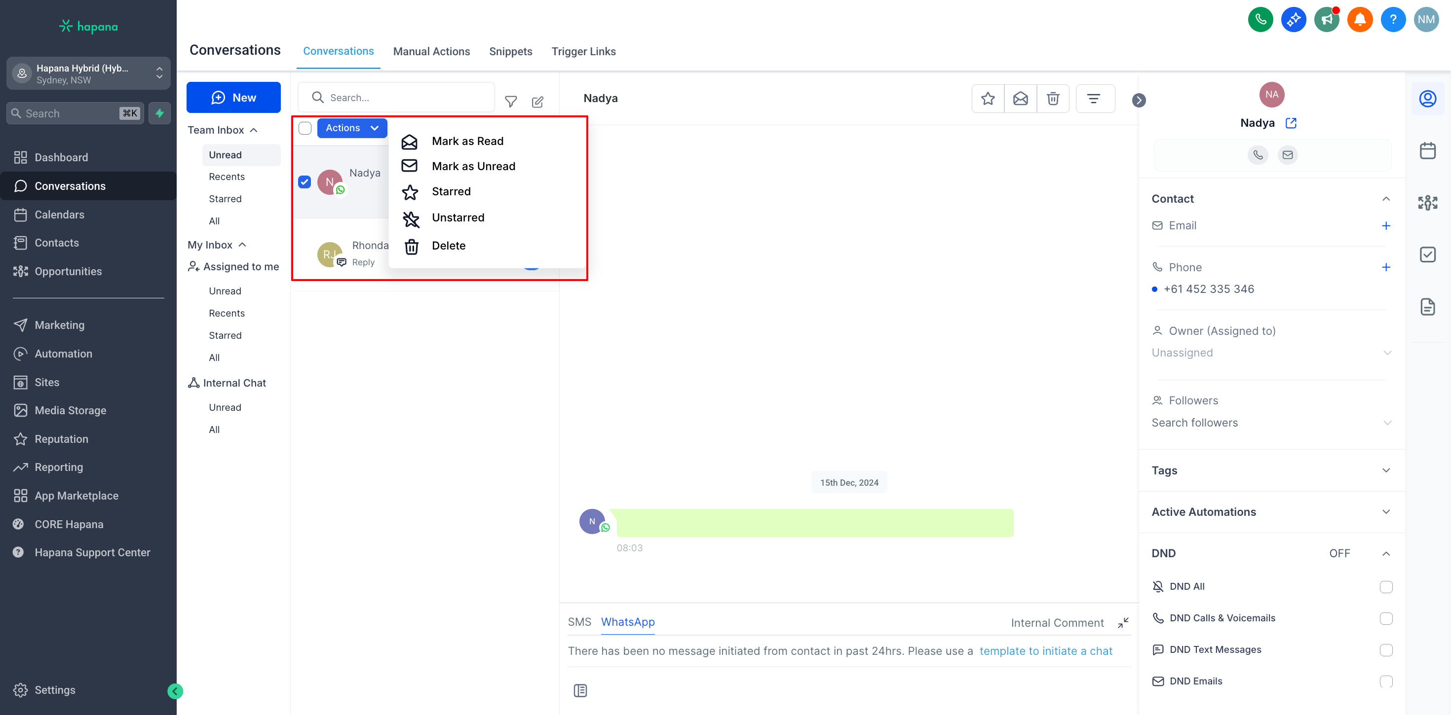 Once you manually mark a message as read, the blue unread indicator disappears. This helps your team stay organized and ensures no messages are mistakenly left behind.