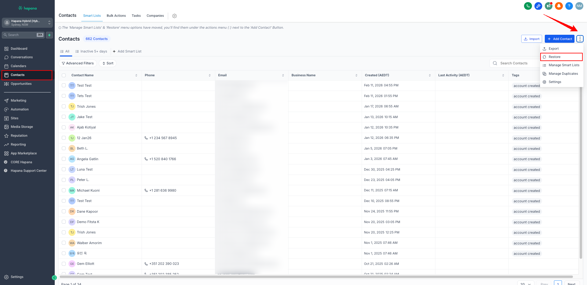 Tip: Restoring does not re-enroll contacts into campaigns or workflows — you’ll need to do that manually if needed.