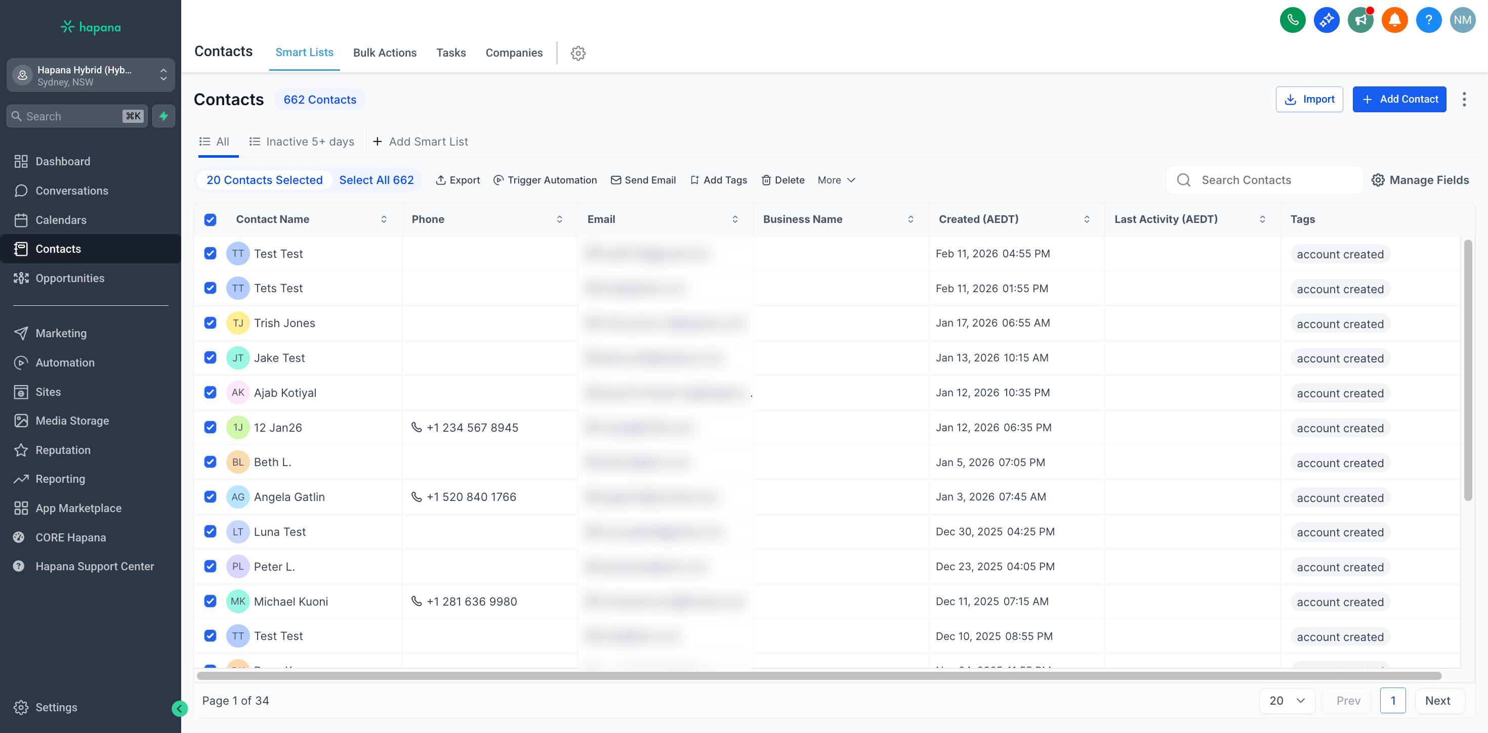 Tip: GROW only loads 20 contacts per page by default. Unless you have selected to show more per page be sure to click “Select all records” if you want more than just what’s showing.