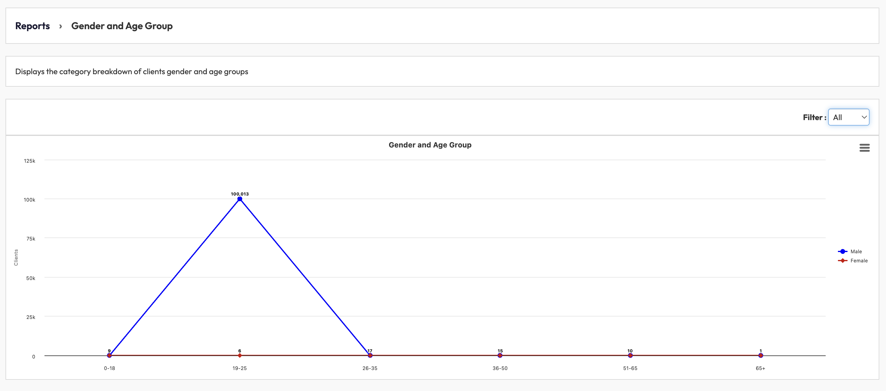 By following these steps, you’ll see a clear chart showing the distribution of your clients across gender and age groups. This data can be used to: