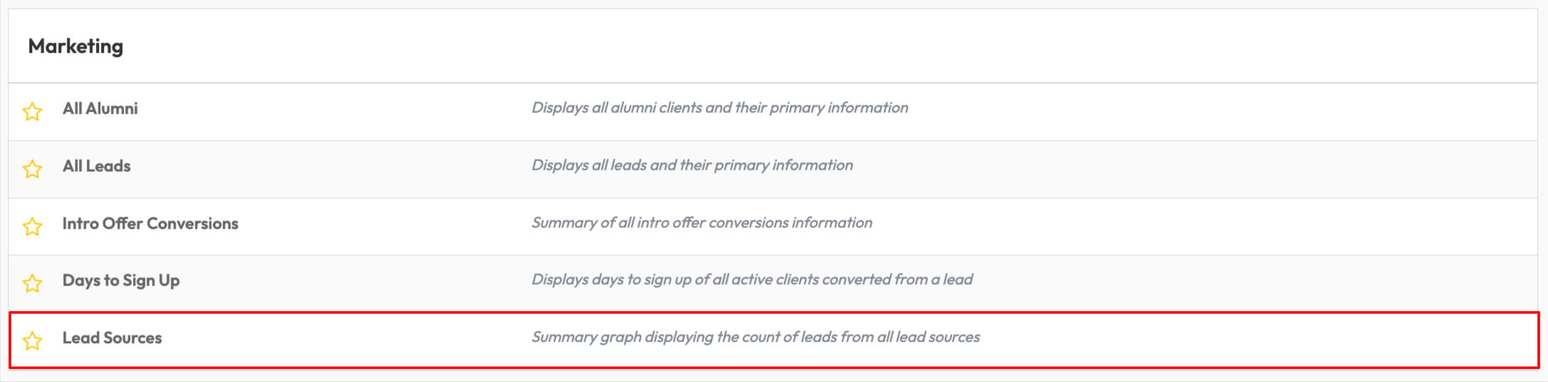 Within the Marketing Category, select Lead Sources